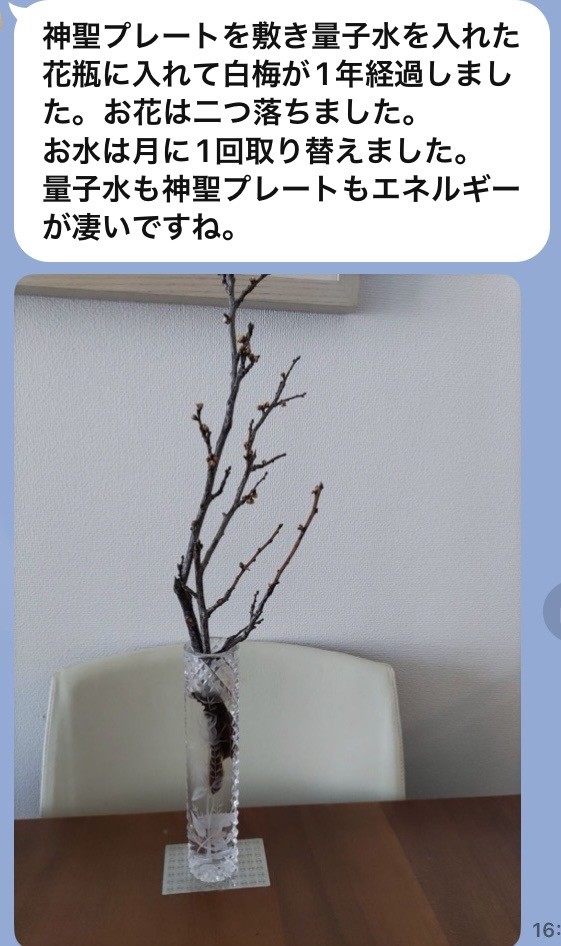 つい先日、お客様から、1年経ったよ、と報告が…これまで、量子水で半年、榊が枯れませんというようなことは珍しくなかったのですが、コレは、量子水にも浸けていない、プレートを敷いただけです。